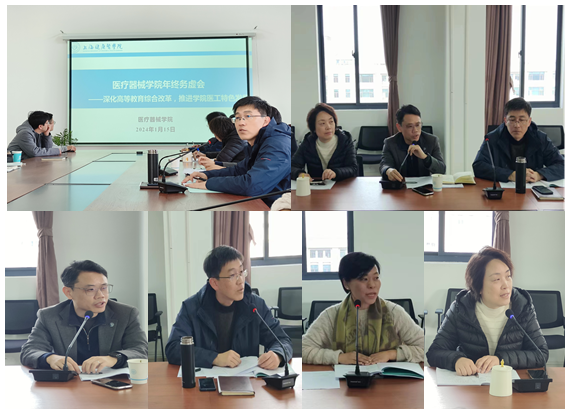 孙丽萍提出以“产教融合”“医工交叉平台建设”为两大抓手,进一步优化架构、提高效率、完善评价体系。杨美表示要以社会需求和学生培养成效为导向,进一步实施专业动态调整,确保人才培养质量。李晓欧鼓励年轻教师利用好专业和平台资源,提高自身科研和教学能力,发挥团队协作精神,共同推进学院的发展和进步。与会人员围绕科技创新、教学改革、人才培养三个方面展开热烈讨论,纷纷为学院发展建言献策。