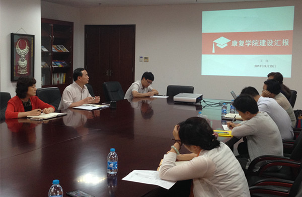 康复学院专业带头人王红老师作了康复学院建设规划汇报,并主要针对黄校长提出的5方面问题进行了回答和交流。黄校长和唐副校长对目前康复学院工作开展和规划进一步提出建议和要求。相关部门也纷纷表示会对康复专业建设给予相应支持。(康复学院)