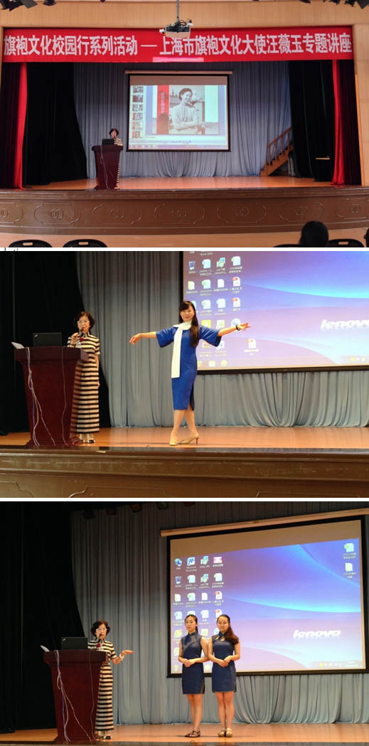 61815:30,上海健康医学院徐汇校区大礼堂进行了一场“旗袍文化校园行----旗袍的演变”的专题讲座,主讲人为上海市旗袍文化大使、上海旗袍沙龙创始人、东方讲坛讲师汪薇玉老师。