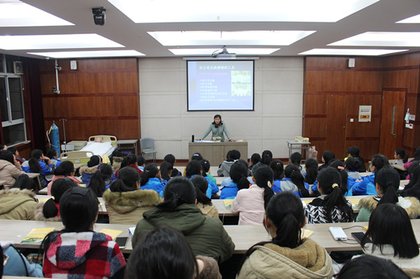 12月10日,新华医院内科护士长刘慧凤在9号楼106教室做了“护理语言交流艺术”的主题讲座,护理学院中职、高职和西藏班总共110名的学生收听了此次讲座。
