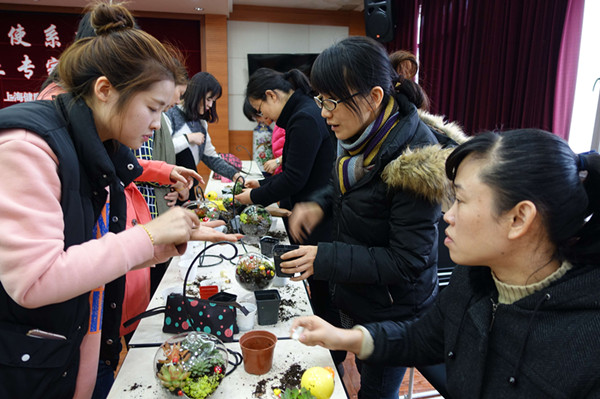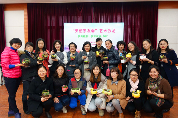 本次活动以时下流行的“多肉”植物为载体,以沙龙讲座的形式,邀请了经验丰富的花艺师与师生们交流种植多肉植物过程中的经验,让师生们了解种植时多肉容器的选择,种植时的颜色搭配,组盆时多肉品种选择等知识。当天的沙龙会上,师生们充分发挥想象力,精心搭配各类多肉,挑选可爱的配饰,制作出了属于自己的、独一无二的植物盆景,活动在师生们充满成就感的喜悦氛围中圆满落幕。沙龙活动得到了老师和同学们的一致认可,为平时工作学习繁忙的师生们提供了现场交流的机会,彼此分享种植多肉植物的乐趣。