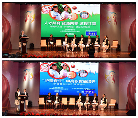 在“专家和观摩学校现场互动点评”环节,专家对我校中高职贯通专业的顶层设计给予了高度肯定,希望我校对接新出台的《上海现代职业教育体系建设规划(2015—2030年)》,为上海“中等职业教育-高等职业专科教育-应用技术本科教育-专业学位研究生教育”的纵向衔接体系做出贡献;同时,继续发挥作为全国卫生职业教育护理专业教学委员会主任单位的优势,主动引领和推动全国护理行业发展,以支撑医药卫生行业业态新需求。