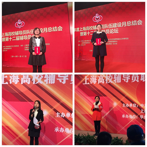 1月12日下午,“2015年度上海高校辅导员队伍建设月”总结会暨第十二届辅导员论坛在东华大学举行。我校获奖辅导员及辅导员代表一行6人参加了本次大会。