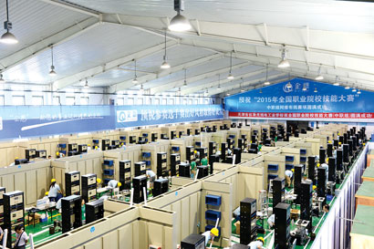 与“国赛”同期在天津进行的2015年全国职业院校学生技能创新成果交流赛,则是另一个展示各地职业教育发展成果、交流经验的平台。上海市城市建筑工程学校的园林设计展览、上海市群益职业技术学校的旗袍盘扣现场制作等精心设计的61个作品和4大互动体验在此展示。坐镇上海市群益职业技术学校现场旗袍盘扣制作展台的老师傅,正是海派旗袍国家级第三代传承人徐永良:“盘扣作为八大工艺之一有着丰富的文化内涵,但因为太费时费力,有时一件旗袍光盘扣的制作就要花费2-3天,现在面临失传的危险。”几年前,上海市群益职校把徐永良请进学校,指导学生学习旗袍制作工艺和及其文化。学校还将组织更多同学学习中式服装的缝制,让民族技艺、传统文化的精华得到更广泛的传承。