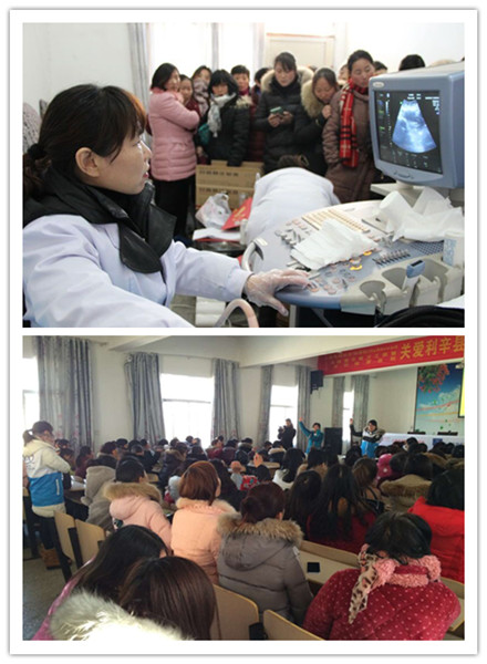 启动仪式结束后,宣讲活动正式开始。同济大学胸外科实习医生边栋亮进行主讲,100余名女教师聆听了讲座,宣讲过后向在场女教师发放了调查问卷,并进行了免费B超检查。由于电压不稳定,调试了多次机器。教室没有空调,大家冻得手脚冰凉。但是这些丝毫未减少志愿者服务的热情,爱在寒冷的冬日涌动。大李集镇的活动进行了两天,随后志愿者们向旧城镇出发。