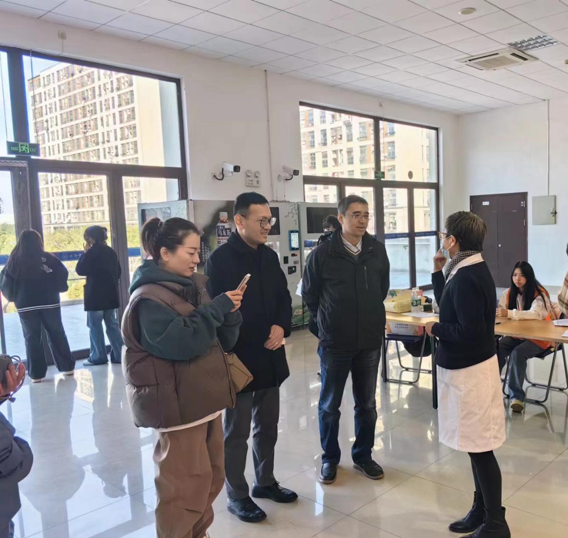 值得一提的是,我校是今年本市第一所开展无偿献血工作的高校,本次献血活动也意味着2024年上海高校献血工作启动。3月13日上午,上海市血液管理办公室副主任龚裕春一行三人专程来到学校,对献血工作进行深入调研指导。血办血源统筹部部长王玮及工作人员刘婕老师同行。他们在详细了解了我校献血工作组织流程并现场对献血同学、志愿者以及血液中心采血工作人员等沟通后对我校高效有序的献血组织管理工作给予了高度评价,并对同学们积极参与、无私奉献的精神表示了赞扬。