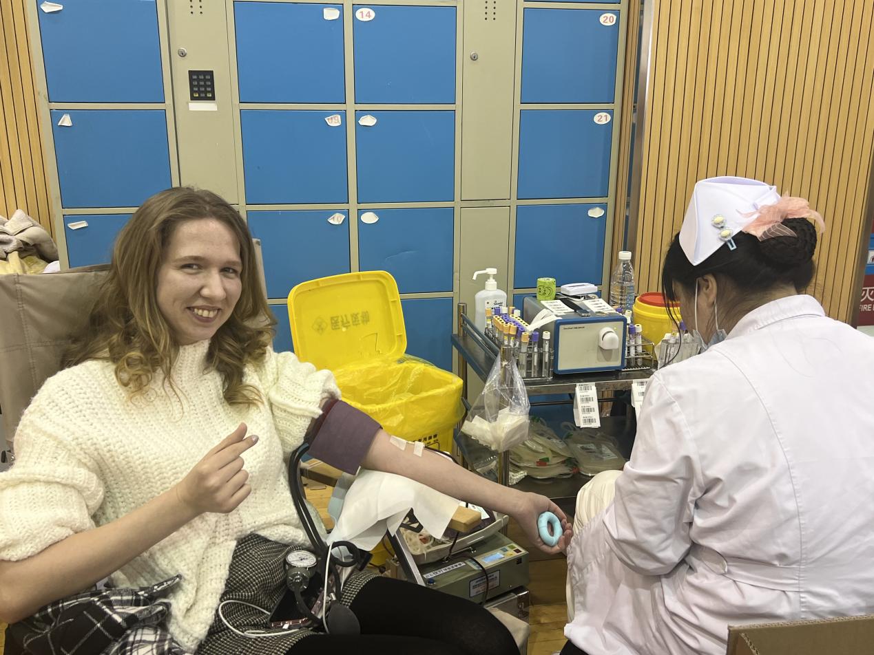 同学们对此次活动报名踊跃,参与积极,很多同学都已不是第一次献血,部分同学因距离上次献血间隔时间不到或者因身体原因不能献血,只能遗憾离开现场。在大家的热情感召下,我校多名留学生也主动来到现场要求献血,他们的加入让现场氛围更加温暖而热烈。