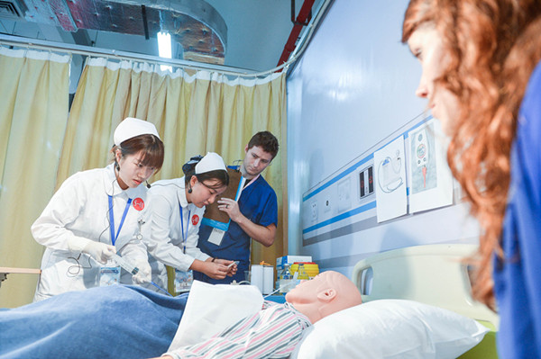 为了培养国际化护理人才,搭建医学院校与医院及国外同行的交流平台,2015上海国际护理技能大赛于今日(11月7日)在上海健康医学院举办。来自8个国家和地区的包括美国、加拿大、挪威、芬兰、荷兰等国及本市 20 所医院、12所学校的40支参赛队和80名选手参加比赛。在比赛现场,所有“标准病人”都由资深的护理专家担任,参赛选手必须以全英语的方式与他们交流。这些“挑剔的病人”通过模拟医院里可能出现的任何场景,随机考察选手是否具备真才实学。文汇报记者 陈龙 摄影报道
