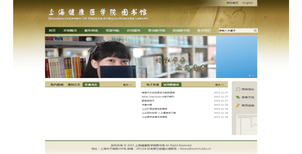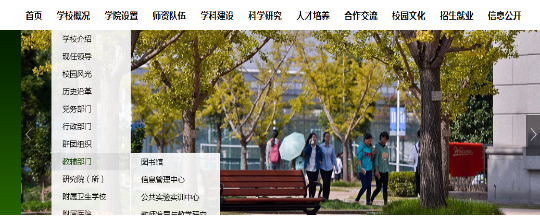 校园网首页→学校概况→教辅部门→图书馆→试用数据库