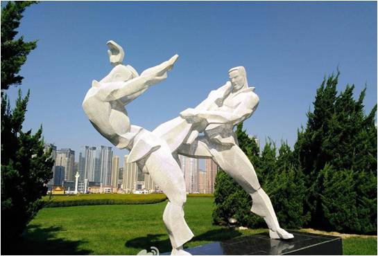 | 5 | 静态人物雕塑《跆拳道运动》 | 3米 | 南苑综合楼门口 | 底座:花岗岩主体:金属 |