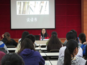活动伊始,任老师以“书到用时方恨少”的体验出发,谈到书籍对人生的重要性。随后,她就“什么是阅读?”、“阅读的价值何在?”等问题与同学们进行了讨论,她谈到“生活里没有书籍,就好像没有阳光”,阅读是每个人人生道路上不可缺少的一门课程。同时,她以生动的语言和活跃的互动方式就当前社会中存在的碎片化阅读、短时阅读等问题与同学们进行了深入的探讨。最后,任老师为同学们推荐了人文历史科技等领域的经典读物,鼓励大家突破专业限制,多读一些经典,并用余秋雨的话和大家共勉:尽早把阅读当作一件人生大事。