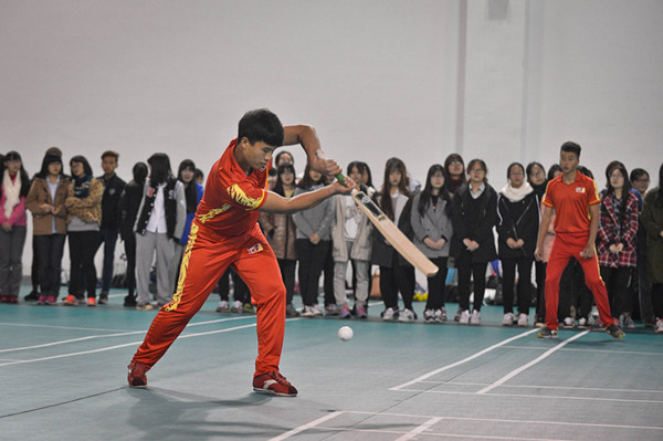 昨天(11月19日),2015年中国男子板球(集训)队开营仪式在上海健康医学院举行。这一起源英国被称之为“绅士的游戏”的运动正式进入大学校园。来自国家集训队的板球队员将在校园专业板球场进行为期一个月的集中训练,同时将帮助这一健康运动在校园中的开展,并筹建大学生板球队。据悉,学校还将与国家体育总局管理中心达成合作,建设国内一流板球场地,共建“中国板球训练基地”,承接国家队训练比赛,及国内外板球赛事。文汇报记者 陈龙 摄影报道