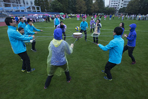 本次拓展活动共有47所上海高校参赛,分别在“旋风跑”、“大脚板”、“一鼓作气”、“能量传输”和“万众一心”五个项目上展开了激烈的角逐。虽然天空阴雨绵绵,但是学校辅导员代表们依然热情高涨、斗志昂扬,在各个项目上团结协作、齐心协力、众志成城,并在“万众一心”拔河比赛上取得小组第一的好成绩。