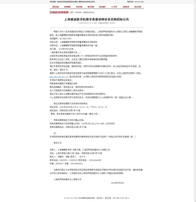 上海健康医学院2016年教材供应商采购公告