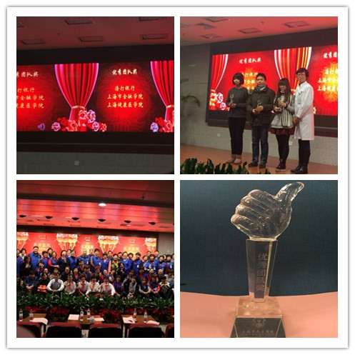 新学期伊始,我院志愿者团队与上海金融学院、渣打银行(上海分行)并列荣获2015年度上海市东方医院“优秀志愿者团队奖”,我院吴帅华同学获得“东方潜力奖”,东方医院副院长谭军、社工部主任吴晓慧为我院获奖团队及个人颁奖。