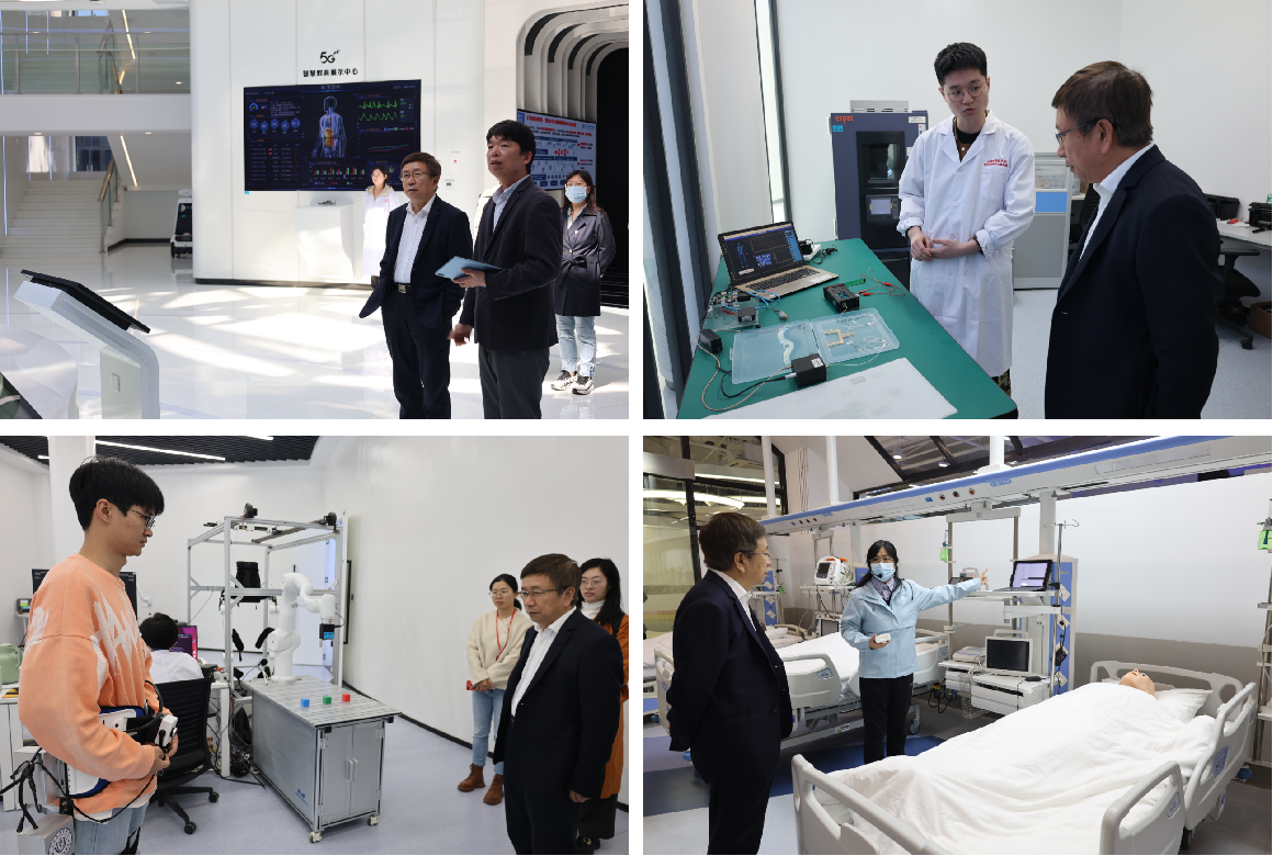 孙教授还参观了学校的上海市智能医疗器械与主动健康协同创新中心、科研协同中心平台和医学实践教学中心,对我校在专业和学科建设方面的支撑条件给予了肯定,赞扬了我校在医工结合方面取得的成果。