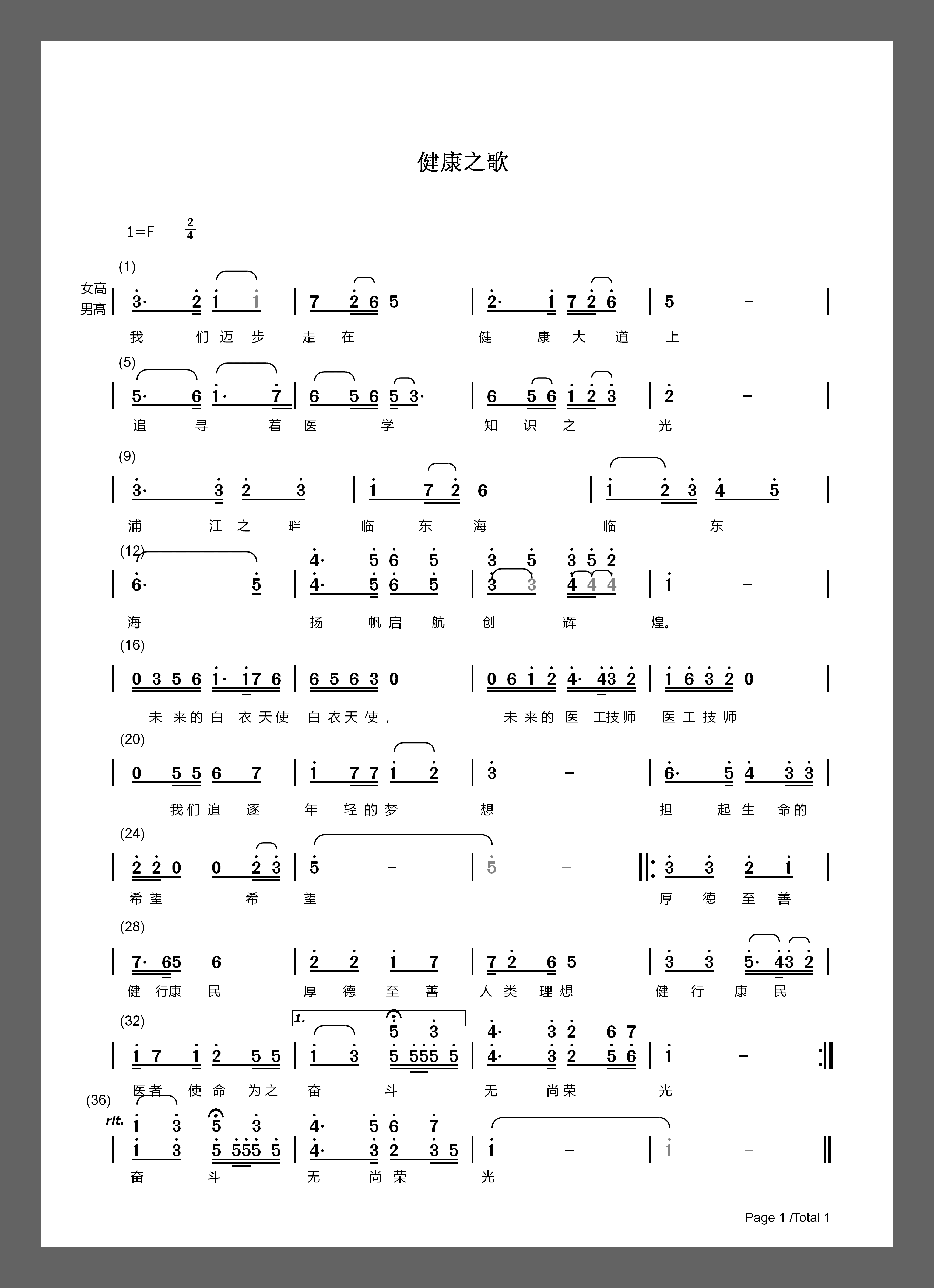 经过全校师生两轮投票,专家、学者精心筛选,学校党委会讨论酝酿,现拟定“厚德至善 健行康民 ”为校训,“健康之花”为校徽,“健康之歌”为校歌。