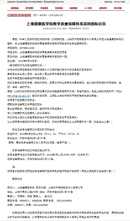 上海健康医学院教学质量保障体系采购招标公告