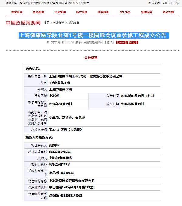 上海健康医学院北苑1号楼一楼圆形会议室装修工程成交公告