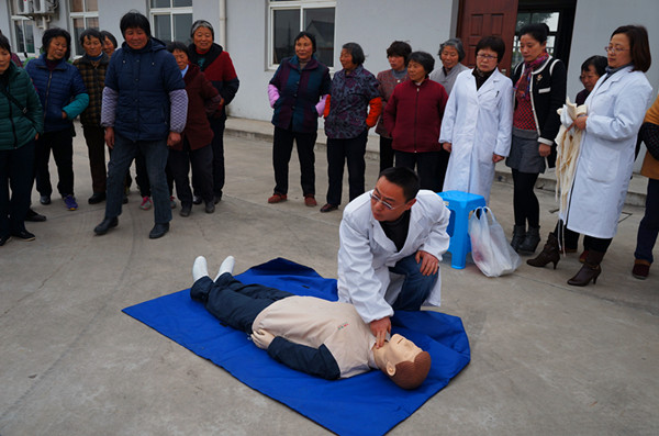针对中老年人的特点,本次活动开设了“高血压和糖尿病的预防与保健”讲座;“心肺复苏”、“包扎”急救演示;测量血压、健康咨询和发放健康宣传册等项目。活动持续了2个多小时,共服务村民100余名,发放宣传资料200余份。