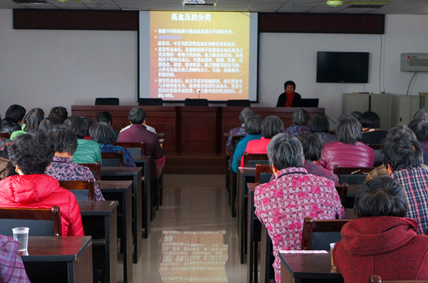 通过面对面授课、心贴心交流、手把手测量,切实提高了广大村民的健康知识和常见病预防常识。(金山分校)