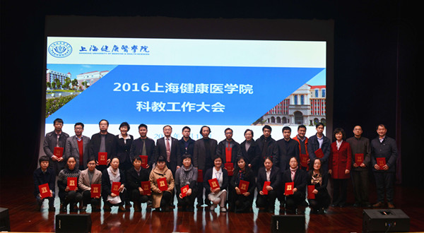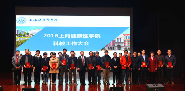 副校长唐红梅宣读了《关于表彰2015年度教学工作突出贡献奖的决定》,宣布了全国职业院校技能大赛护理技能比赛一等奖(指导教师)、“十二五”高职国家规划教材、上海市高职高专院校中高职贯通专业建设教学设计比武一等奖、上海市高校青年教师教学技能大赛一等奖、上海市第六届“星光计划”职业院校技能大赛一等奖(指导教师)的获奖名单,我校沈君、周丽君、宋丽娟等11位教师领奖,全体校领导颁奖。副校长张道方宣读了《关于表彰2015年度科技工作突出贡献奖的决定》。对高质量SCI论文作者、国家级科研计划项目(课题)获得者、学术著作作者、发明专利获得者、签约金额10万元以上横向项目承接人进行了表彰,程洪涛、董晛、杨文超等老师领奖,全体校领导颁奖。