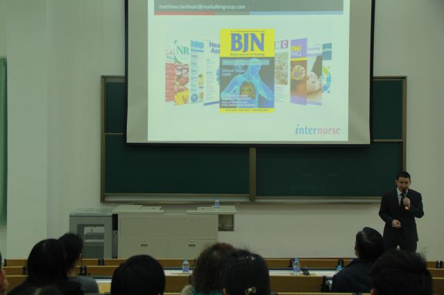 针对广大师生非常感兴趣的论文写作、期刊投稿等系列问题,学校图书馆邀请EBSCO合作出版商Mark Allen集团出版总监Matt Cianfarani先生前来我校作题为“如何成功投稿至SCI国际医学期刊”的讲座。主讲人Matt 先生在医疗保健相关出版领域有着丰富的从业经验,负责《British Journal of Hospital Medicine》、《British Journal of Nursing》以及《British Journal of Midwifery》等重要医学期刊学术研究内容的审定和出版。讲座中,Matt 先生结合实例与大家分享了如何利用SCI数据库进行选题,投稿被拒绝的原因分析以及同行业评议互查的重要性等问题。在随后交流环节中,Matt先生与师生们精彩互动,并耐心回答了相关问题。