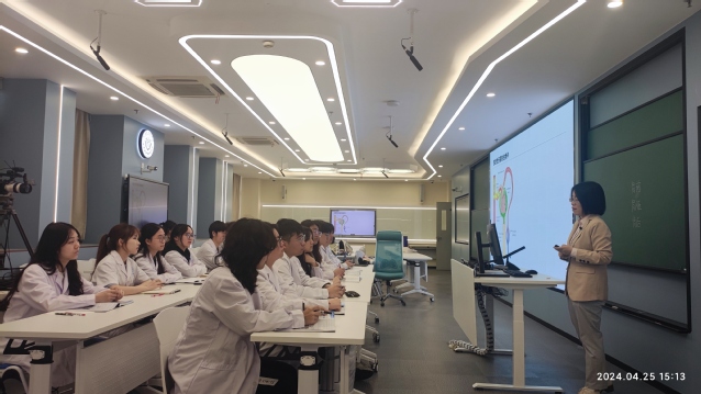 4月25日,教师教学发展中心在北苑启明楼智慧教室举办学校教学质量月活动之教学创新示范课活动,医学影像学院黄辰老师和15名学生共同展示了一堂精彩的《核医学》示范课。本次活动采取线上线下方式同步开展,来自校内外、附属医院的320余名教师参加。教务处处长、教师教学发展中心主任王莉主持示范课活动。