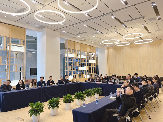 在座谈交流中,医学园区党委书记周永刚从战略定位、产业园区布局、功能分布、创新要素、创新服务等方面对产业园区新质生产力的情况作了详细介绍,并着重谈到医学园区打造“医药、医学、医械、医疗、医养”五医联动、融合发展的医学全产业链生态,已形成集医、教、研、产为一体的综合性专业医学园区的良好前景,欢迎学校与园区在人才培养、科技项目合作、学生就业、高端交流等方面进行深度的产学研融合。