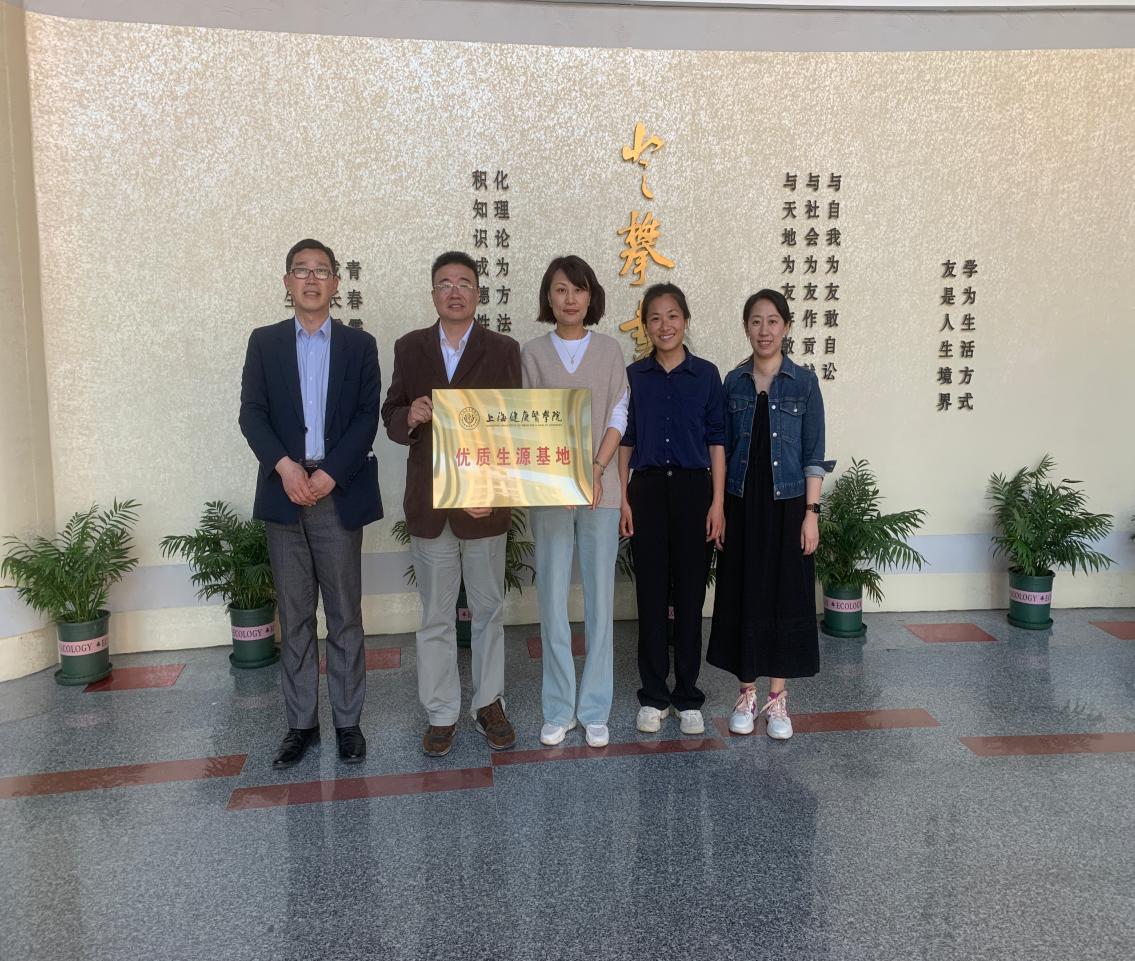 为优化生源结构,提升我校招生质量,共同研究中学与大学相衔接的人才培养途径,推动教育教学质量提升。上海健康医学院基础医学院院长杨智昉,上海健康医学院学生处副处长、临床医学院党总支副书记罗瑾琰等一行4人,于5月8日走访上海市市北中学,与市北中学签订“优质生源基地”共建协议并授牌。