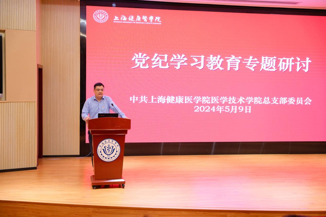 为深入学习贯彻2024年全国两会精神,持续深入开展党纪学习教育,5月9日下午,医学技术学院党总支在北苑200人报告厅召开理论学习中心组(扩大)会议暨全院教师政治理论学习会,学院全体教职工、学生党员、入党积极分子参加学习,会议由学院副院长李延飞主持。