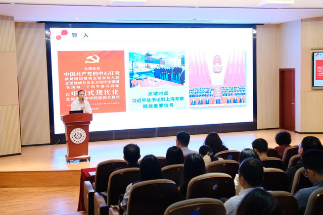 会上,上海市青年讲师专家团成员、上海大学副教授孙会岩,进行了党纪学习教育党性教育专题讲座。孙教授以“学习贯彻2024年全国两会精神,加快培育和发展新质生产力”为题,从“2023年经济社会发展工作回顾”“2024年经济社会发展要求和工作任务”“在实践中贯彻好落实好全国两会精神”三个方面,鼓励大家要全方位多角度深层次学习领会,更好地服务改革发展大局。孙教授结合最新时事热点,围绕学习《中国共产党纪律处分条例》,提出要做到学以致用,增强政治自觉、思想自觉和行动自觉,坚定理想、锤炼党性,一以贯之当好“施工队长”。