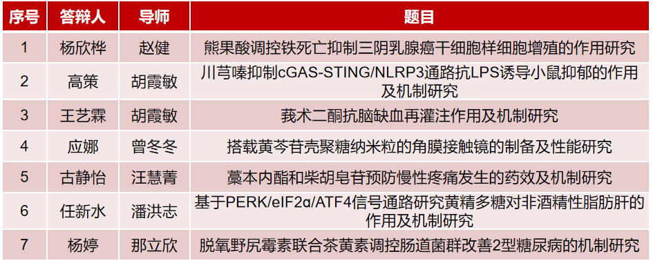 最后,答辩主席召开答辩委员会会议,对答辩人论文及答辩情况进行集体评议,认真撰写答辩决议书,对是否同意毕业及是否建议授予学位进行无记名投票表决。本次2024届药理学、中药学专业7名研究生均顺利通过学位论文答辩,答辩会圆满落幕。中药学与药理学专业硕士毕业生们交出的高质量答卷是上海健康医学院与上海中医药大学硕士研究生联合培养模式的重要成果,也是上海健康医学院药学学科健康蓬勃发展的关键指标,学院将进一步加强联培研究生的培养质量管理,为药学(专硕)学位点的申报提供有力支持。