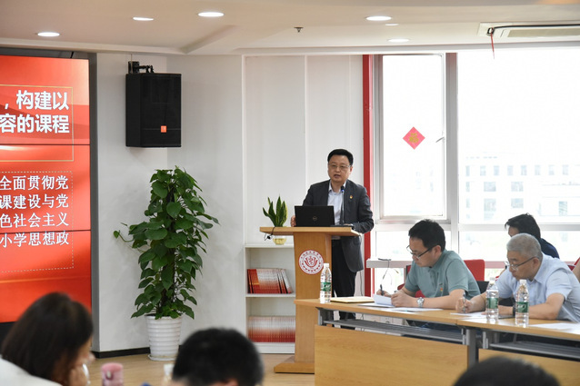 在领学环节,马克思主义学院院长李兆伟以“奋力开创新时代思政教育新局面”为题,带领全体教师重温学习习近平总书记对学校思政课建设重要指示,并深入总结了学院在“坚持和加强党的全面领导”、“坚持建立健全工作体系”、“坚持改革创新推动实践”、“坚持目标导向”四个方面推进“大中小思政教育一体化建设”中的实践探索。