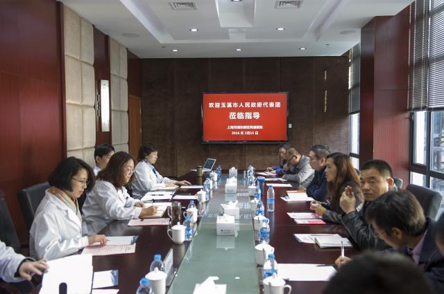 3月15日上午,云南省玉溪市“互联网+医疗健康”工作组副组长王红、玉溪市卫计委副主任史勇率玉溪市人民政府代表团一行9人,到周浦医院进行参观交流。周浦医院副院长李萍、工会、院办、医学拓展部、信息中心、教学培训部等相关职能科室负责人参加了交流活动。