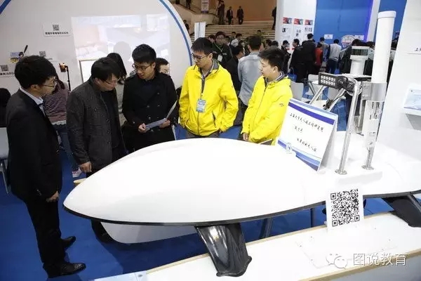 上海大学无人艇工程研究院的技术员正在向观众介绍成果