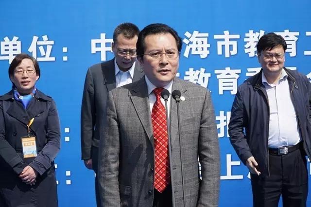上海市教委副主任王平正在上海教育博览会开幕式上致辞。