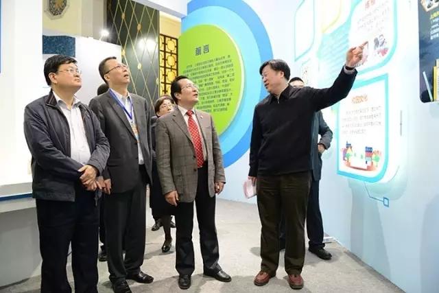 上海市教委副主任王平(右)正在参观。