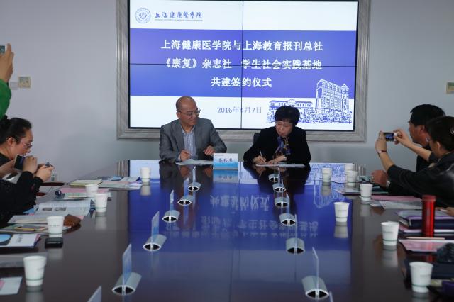 4月7日,正值世界卫生日。我校首次“校媒”合作共建学生社会实践基地,我校与上海市教委直属上海教育报刊总社《康复》杂志进行共建实践基地签约仪式。上海教育报刊总社副社长徐勇、《康复》社主编李文井等参加学生社会实践基地共建签约仪式。副校长曹蓉蓉,学生处、宣传部、校团委负责人,康复、护理、医技学院党政负责人参加仪式。
