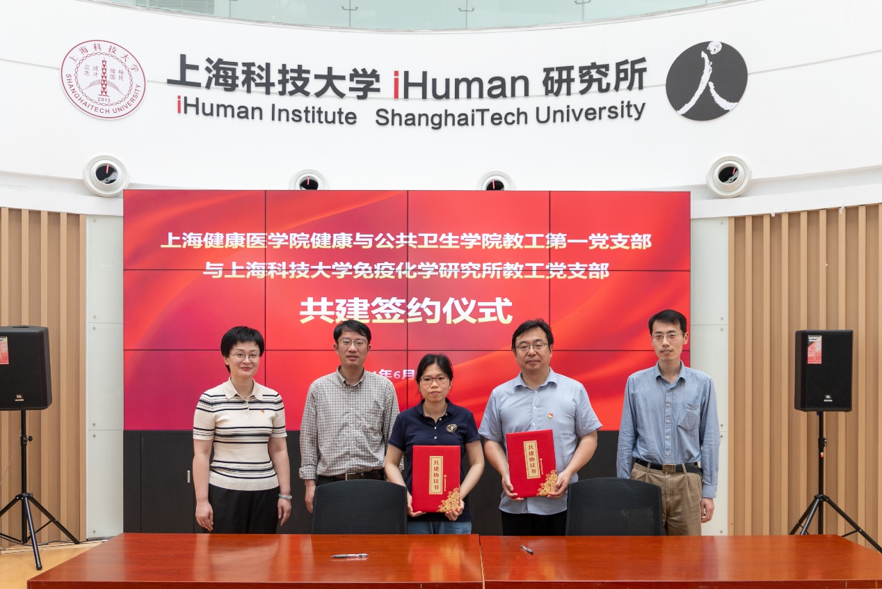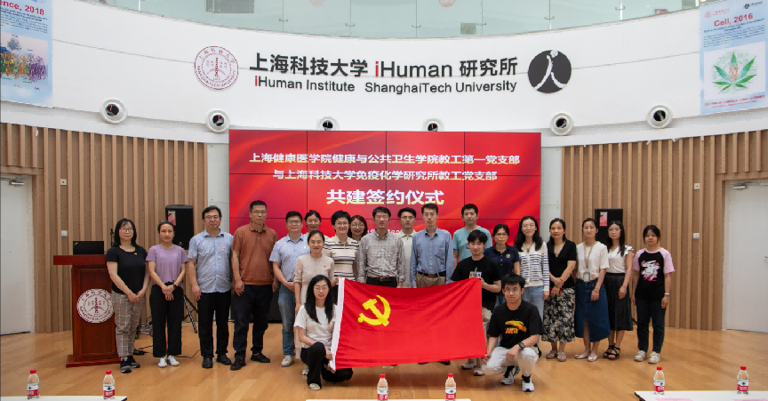 为进一步加强新形势下基层党组织建设,强化党组织之间交流合作,构建资源共享、优势互补、互相促进、共同提高的党建工作新格局,上海健康医学院健康与公共卫生学院教工第一党支部和上海科技大学免疫化学研究所教工党支部于2024年6月20日在上海科技大学免疫化学研究所开展党建共建活动。上海科技大学免疫化学研究所助理所长吴侃教授、上海健康医学院纪委副书记、纪委办公室主任施奇、上海健康医学院健康与公共卫生学院党总支书记顾斐雯出席共建活动。上海科技大学免疫化学研究所教工党支部、上海健康医学院健康与公共卫生学院教工第一党支部全体党员出席,本次活动还邀请了学院学科带头人陈伟教授等党外知识分子参加。