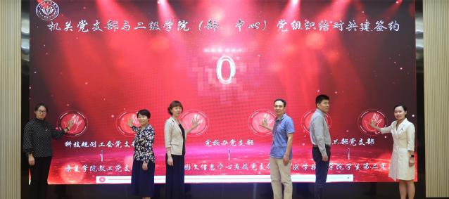 将党建和业务深度融合,提升党建工作围绕中心、建设队伍、服务群众的水平,会上,机关18个党支部与二级学院(部)党支部结对签约,共建共融促进发展。