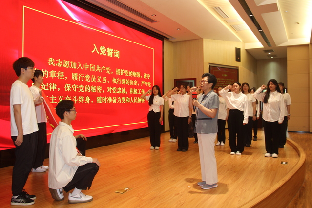 入党宣誓,是一项庄严的仪式,更是一次党性教育。由“光荣在党50年”纪念章获得者老同志代表江才妹领誓,带领新入党学生党员代表入党宣誓,鼓舞全体党员铭记入党初心,勇担职责使命。
