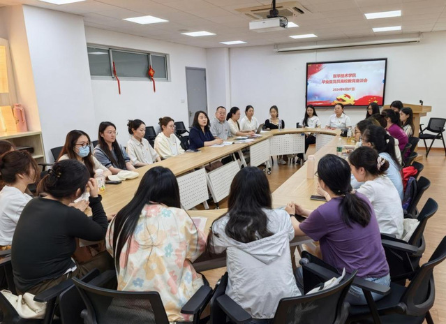 6月27日上午,医学技术学院在北苑4507召开2024届毕业生党员座谈会,党总支书记吕晓丽、副书记关磊、学生第二党支部书记彭楠参加座谈会,座谈会由关磊主持。