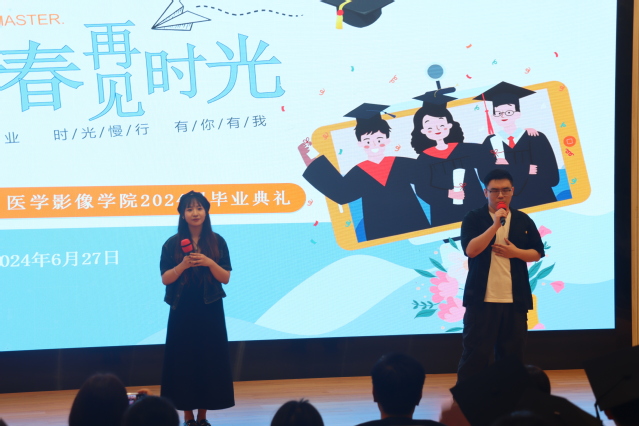 又是一年毕业季,2024届的影像学子们即将告别大学时光,踏上崭新的人生旅程。6月27日下午,医学影像学院2024届毕业典礼在北苑200人报告厅顺利举行。医学影像学院党总支书记朱清,党总支副书记、院长徐小萍,党总支副书记乔慧敏,以及各教研室主任、教授代表、教师代表、毕业班辅导员和2024届毕业生出席。典礼仪式由乔慧敏主持。