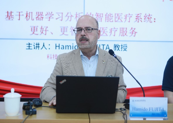 7月2日下午,【健·谈】第4期学术系列讲座在我校北苑顺利举办,本期特邀请马来西亚理工大学“马来西亚-日本国际理工学院”教授、日本岩手县立大学杰出教授、西班牙格拉纳达大学教授,全球高被引科学家Hamido Fujita教授作题为“基于机器学习分析的智能医疗系统:更好、更智能的医疗服务”的精彩报告。本场讲座由科技处副处长陈冰主持,学校教师、科研人员、研究生以及附属医院科研人员160余人线上线下同步参会。