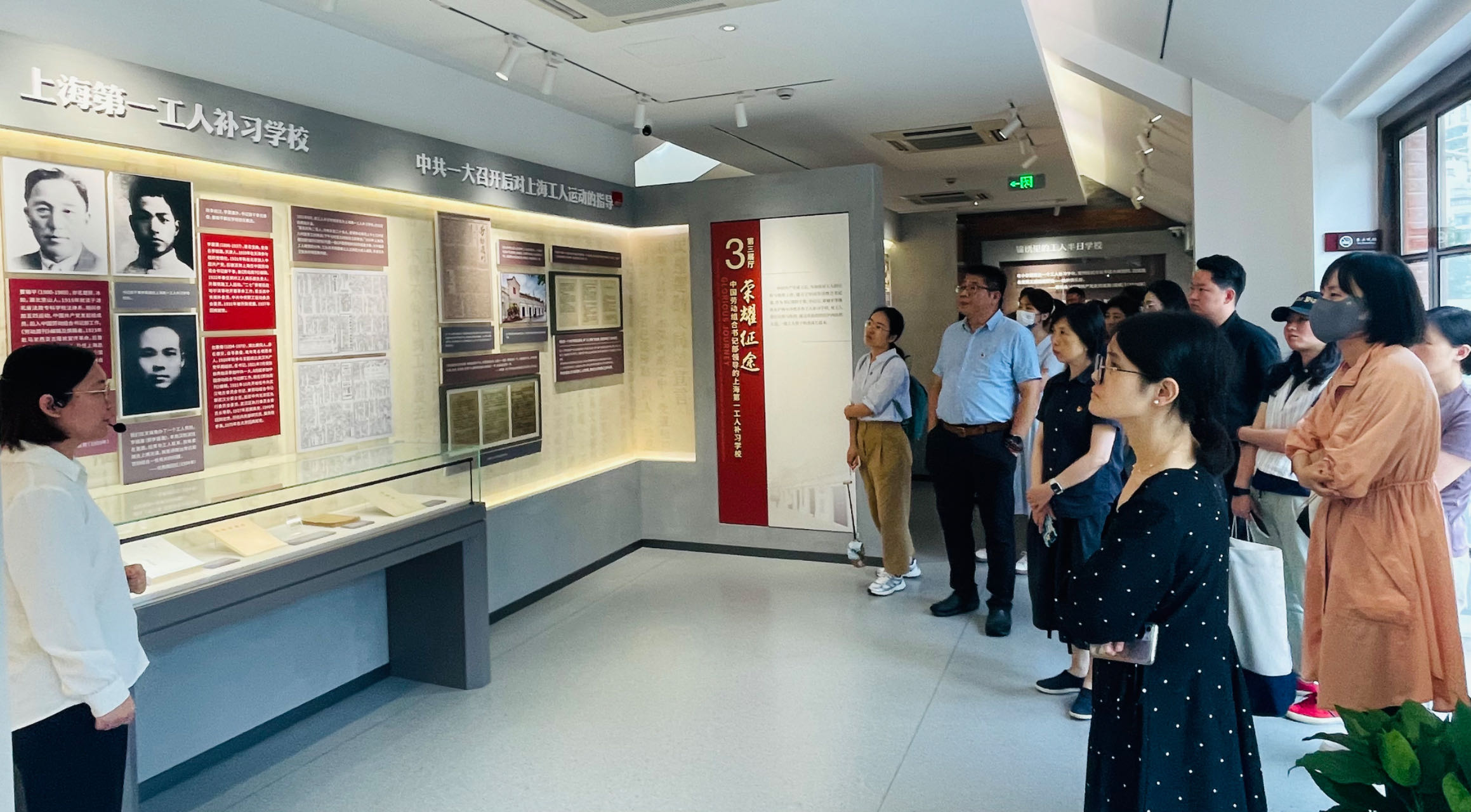 坐落在苏州河畔的沪西工人半日学校史料陈列馆是一座集收集、研究、展示、教育、旅游为一体的多功能专业红色文化场馆。该馆旨在挖掘红色资源,真实呈现“赤色沪西”历史,特别是中国共产党在沪西小沙渡办学的历史。馆内共设置了火红序幕、峥嵘起步、荣耀征途、火种绵延四个展区,通过生动的文字、丰富的影像资料,以及对学校原本的居住、教室等场景进行复原,力求最真实地呈现中国共产党在沪西小沙渡办学的历史。馆内还复原了李启汉在沪西工人半日学校的宿舍,还原了衣柜、办公桌和陈设,特别放置了李启汉向工人开展宣传所用的各类报纸,让参观者仿佛身临其境。