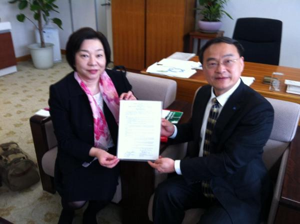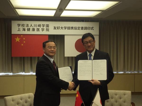 在川崎学园访问期间,黄钢一行受到了川崎学园理事长川崎诚治先生的热情接待,双方就今后的合作、师生交流进行了友好的协商,并在理事长的陪同下参观了川崎医科大学附属医院。最后,黄钢与川崎诚治理事长分别代表上海健康医学院和学校法人川崎学园共同签署了友好大学提携协定书。协议签署仪式后,双方着重就进一步开展康复治疗专业人才培养进行了具体的讨论。
