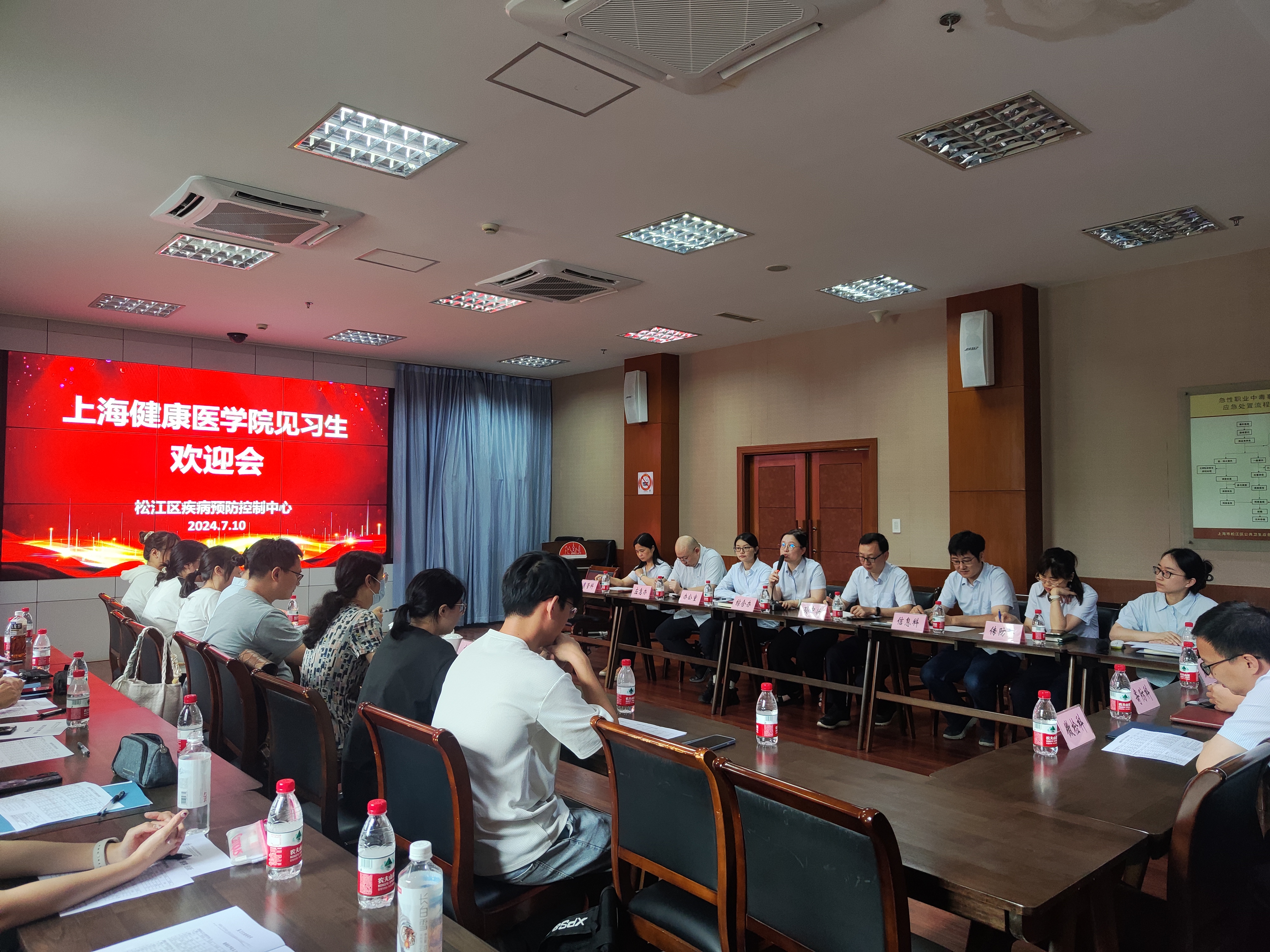 7月10日上午,健康与公共卫生学院2023级公共事业管理和2022级食品卫生与营养学专业本科生见习见面会在松江区疾病预防控制中心1号楼应急指挥厅举行。