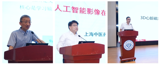 开幕式结束后,举行了本次会议的学术论坛。论坛由上海健康医学院医学影像学院副院长姚旭峰主持,多位专家学者带来了精彩的学术报告。复旦大学特聘教授宋志坚的《智能诊断、AI4S与医学大模型(科研实践与前沿分析)》,从人工智能在医学中的应用、前沿问题、大模型与智能医学、实验室工作简介、AI未来临床前景等方面进行了详细的交流汇报。中国中西医结合学会第八届影像专业委员会主任委员王嵩教授的《人工智能影像在肝癌精准诊疗应用与发展》,从诊断及鉴别、疾病分级、疗效评估、预后预测、展望与思考五个方面展示了人工智能影像在肝癌精准诊疗的研究进展和创新思路,为与会者带来了全新的视角和启发。上海科技大学生物医学工程学院副院长、联影集团中央研究院执行院长胡鹏教授的《3D心脏磁共振影像方法新进展》,重点展示了3D心脏磁共振成像技术的新进展、新型对比剂的优势和4D MUSIC成像技术在多中心研究中的表现。