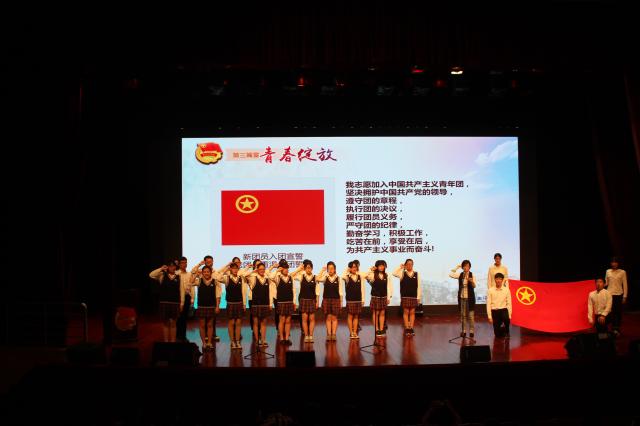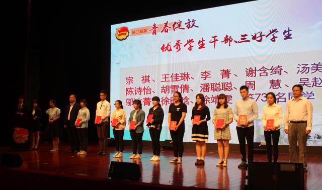 大会共分为青春痕迹、青春梦想、青春绽放三个篇章。表彰大会在喜庆的舞龙表演中拉开序幕,同学们专业精彩的表演博得了观众的热烈掌声。大会以两位主持人深情的朗诵开场,两位主持人带领我们回顾了五四运动的历史、共青团的光荣传统、团旗团歌的知识,在场的同学们在朗诵声中,重温了历史,增进了对于团史的了解。大会进入第二篇章青春梦想,两位主持人介绍习近平总书记为青年提出的八字真言,诠释了“勤学,修德,明辨,笃实”的内涵真谛,号召青年学生坚定理想信念,下得苦功夫、求得真学问,善于明辨是非、善于决断选择,笃实扎实,踏踏实实做人。随后播放的团学宣传片展示了我校建校以来团学工作的思路目标和成绩效果。
